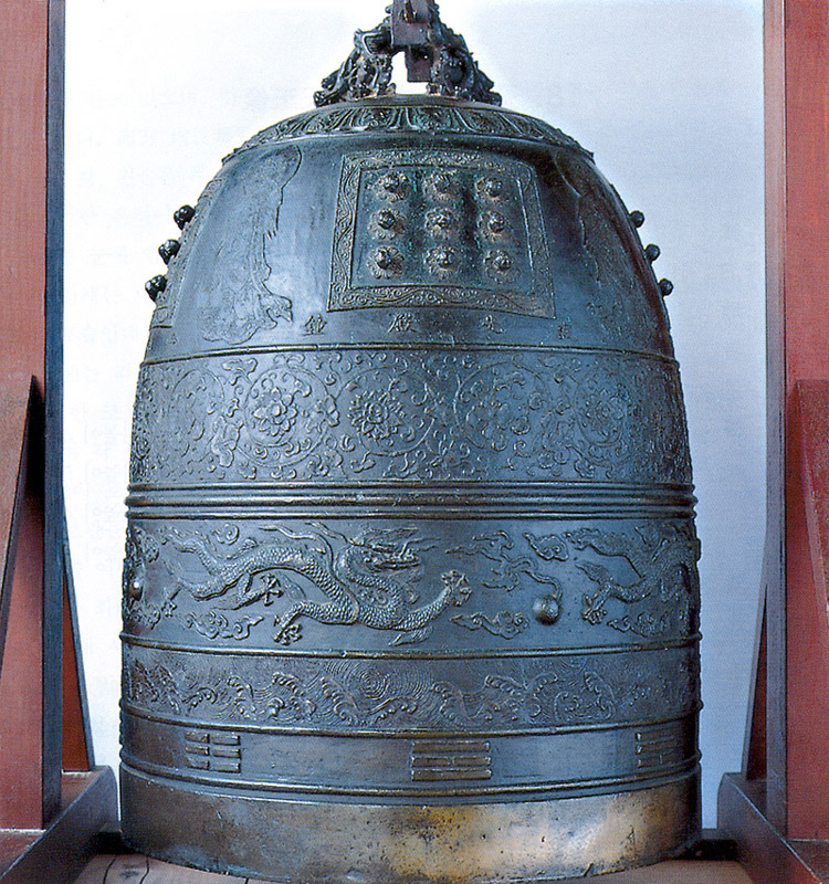 해인사의 대적광전 안에 있는 높이 85㎝, 입지름 58㎝, 두께 6㎝의 종이다. 꼭대기에는 사실적이고 생동감 넘치는 두 마리의 용이 종을 매다는 고리인 용뉴 역할을 하고 있고, 어깨부분에는 연꽃을 새겼다. 밑으로는 돌출된 9개의 연뢰가 사각형모양의 연곽 안에 있으며, 연곽 사이사이에는 보살입상이 배치되었다. 종 중앙에는 3줄의 굵은 가로줄을 돌리고 그 위쪽에는 꽃무늬를, 아래로는 용무늬를 새겨 종 전체가 무늬로 가득 차 매우 화려한 느낌을 주고 있다. 아랫부분에는 다시 2줄의 가로줄을 돌리고, 윗쪽에는 일정한 간격을 두고 8괘문을 두었지만, 아랫쪽에는 아무런 무늬를 새기지 않았다. 연곽 아래에는 조선 성종 22년(1491)에 만들었다는 양각명문이 있다. 이 종은 조선시대 종의 변천과정 연구에 중요한 자료가 되고 있으며, 불교 공예품으로도 가치가 크다.