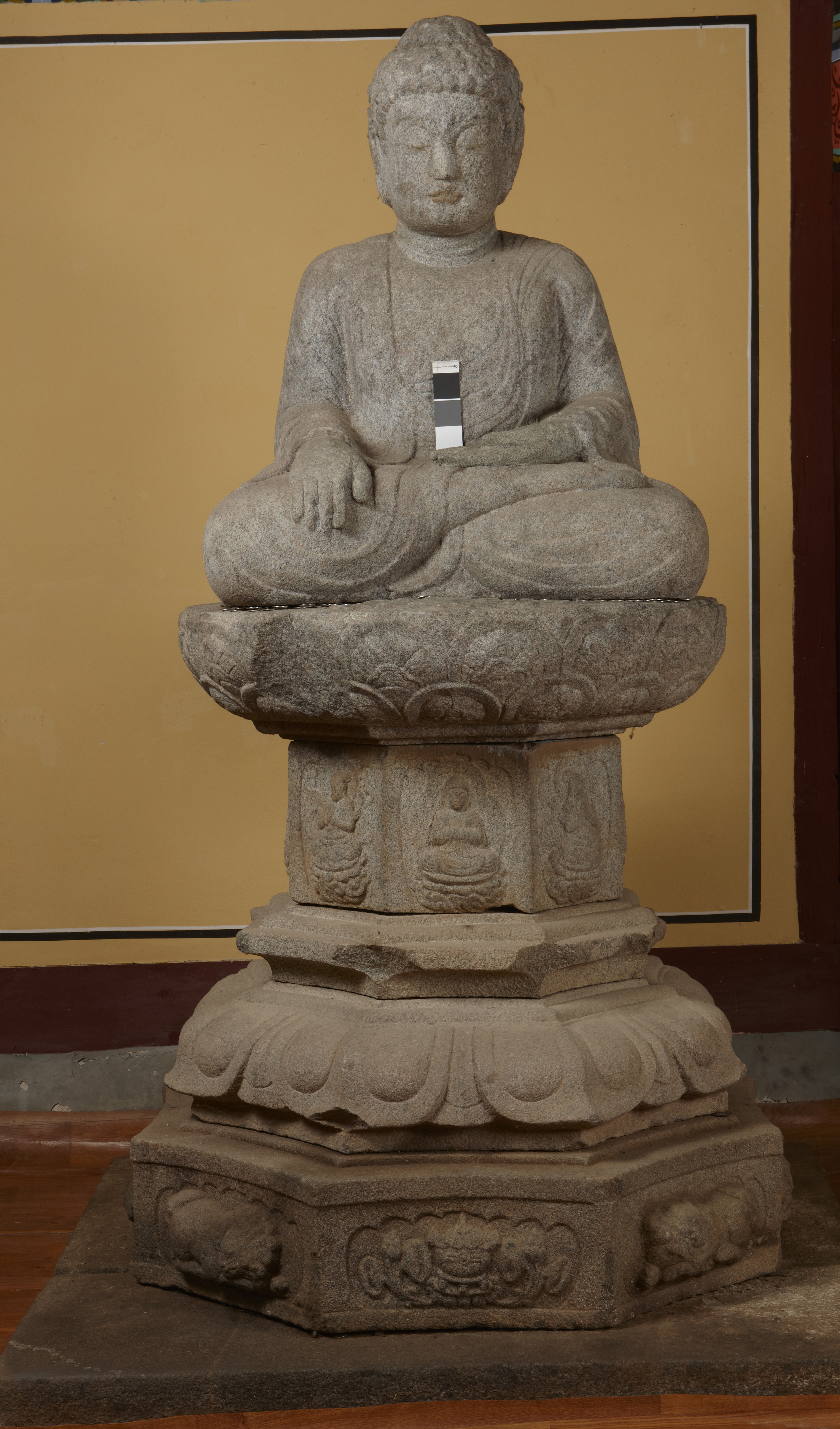 특히 대좌 뒷면에 조각된 지장보살상은 특이한 예로 주목되며, 높고 화려한 대좌는 양감이 강조된 불상과 어우러져 조화를 이루는 수준 높은 작품이다. 거의 훼손 없이 원형을 유지하고 있는 삼단대좌와 불상은 다소 장식화 경향을 보이는 통일신라 9세기의 전형양식을 보여주고 있다.