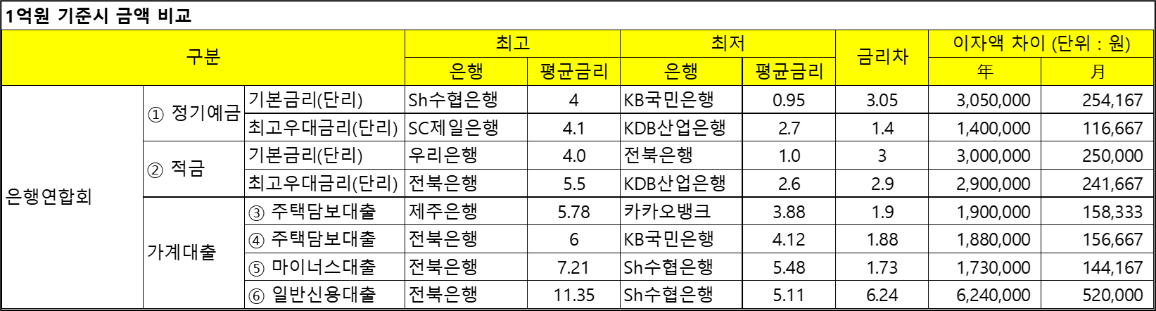 은행대출 이자 비교 현황