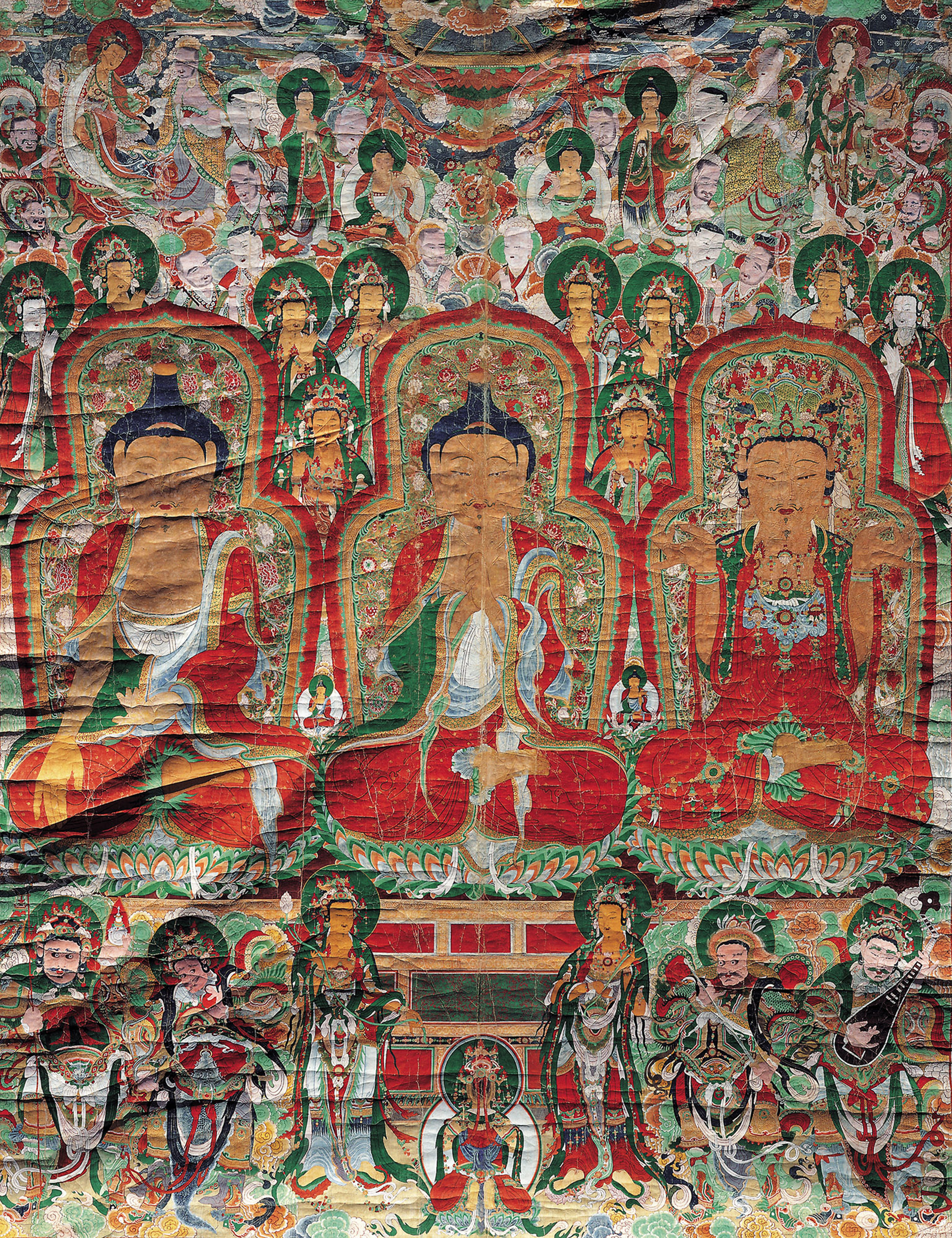 비로자나불을 중심으로 석가와 노사나불 등 삼신불이 진리를 설법하고 있는 장면을 그린 괘불이다. 괘불이란 절에서 큰 법회나 의식을 행하기 위해 법당 앞뜰에 걸어놓고 예배를 드리던 대형 불교그림을 말한다. 이 그림은 길이 12.47m, 폭 9.48m의 크기로 전체적으로 상ㆍ중ㆍ하 3단 구도를 이루고 있다. 맨 윗부분에는 관음보살과 대세지보살상, 제자상, 금강역사상 등이 배치되어 있고, 가운데에는 비로자나불, 석가, 노사나불 등 삼신불이 묘사되어 있고, 맨 아래에는 문수보살과 보현보살상, 사천왕상, 사리불 등이 있다. 이 괘불은 효종 원년(1650)에 제작되었는데 중단의 삼신불을 크게 강조한 독특한 구성을 하고 있다. 또한 그림에 괘불 조성에 필요한 많은 물품의 시주자를 적어놓고 있어 17세기 중반의 생활상과 사찰의 재정규모를 파악할 수 있는 중요한 자료가 되고 있다.