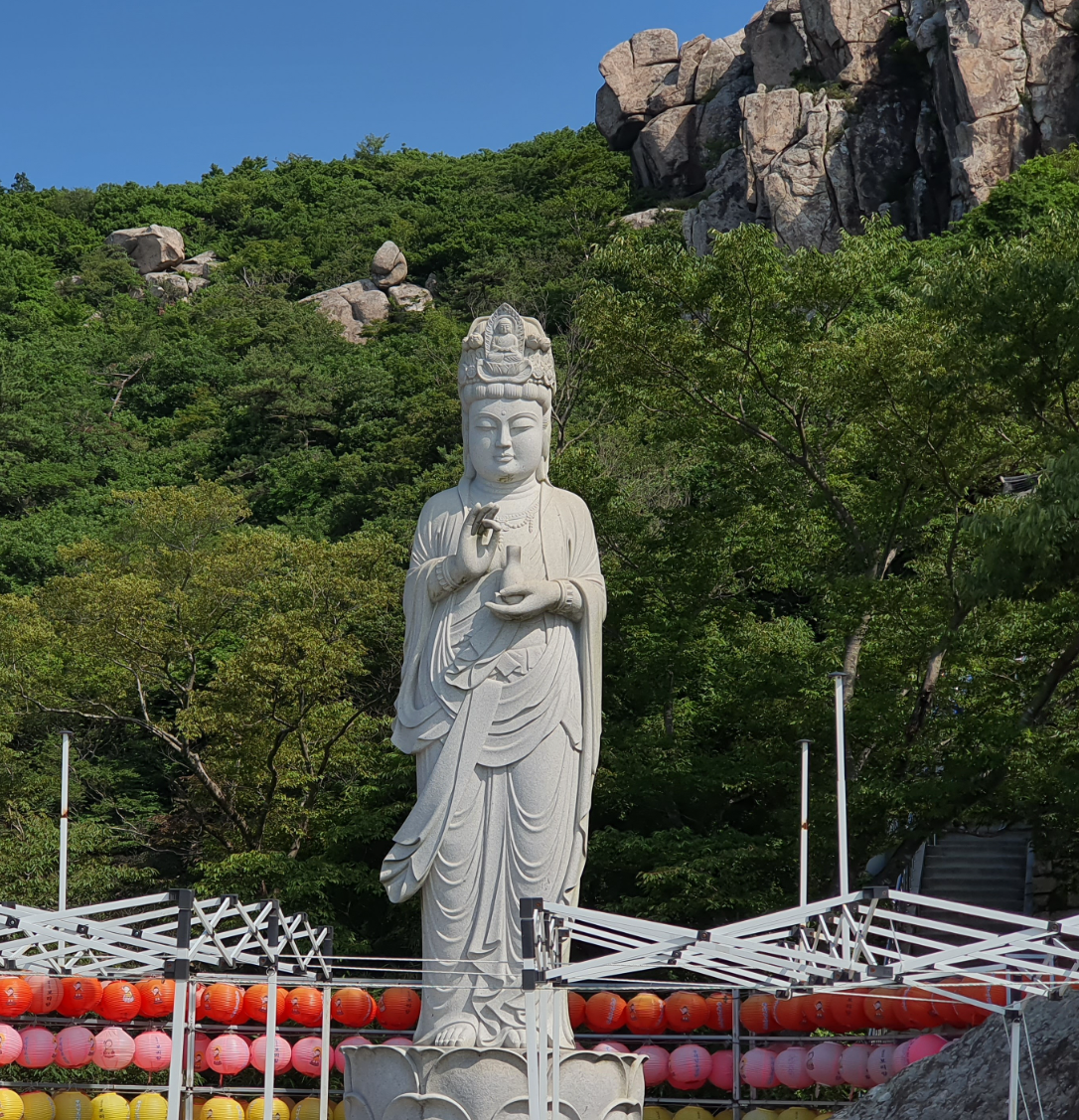 참으로 불교적인 시다. 이제는 낙산사의 주인공인 관세음보살님을 친견할 차례다. 전각 이름이 원통보전이다. 관세음보살은 듣는 것이 어느 보살보다도 뛰어나 깨달음을 얻었기 때문에 청각이 원통자제하다고 해서 원통교주, 원통대사라 한다. 관세음보살님의 청각은 아마 세계 최대의 우주 안테나인 골드스톤의 100만 배가 넘을 것이다. 그만큼 중생의 소리를 듣고 해결하는 최고의 권위자로 중생의 문제를 해결해 주는 분이다.