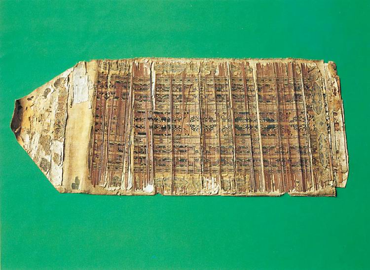 가느다란 대나무 조각을 색실로 엮어서 직사각형 모양으로 만들고, 끝단에는 삼각형의 비단을 붙여 끈을 달아 경전을 말 수 있도록 하였다. 대나무는 색실로 엮어 꽃무늬를 넣었고, 사방에는 금강저문양이 표현된 비단을 두르고 뒷면에는 종이를 발랐다. 전체적으로 손상이 심한 편이지만 여러 가지 색실로 나타낸 문양은 아직도 정교하며 잘 남아 있다.
