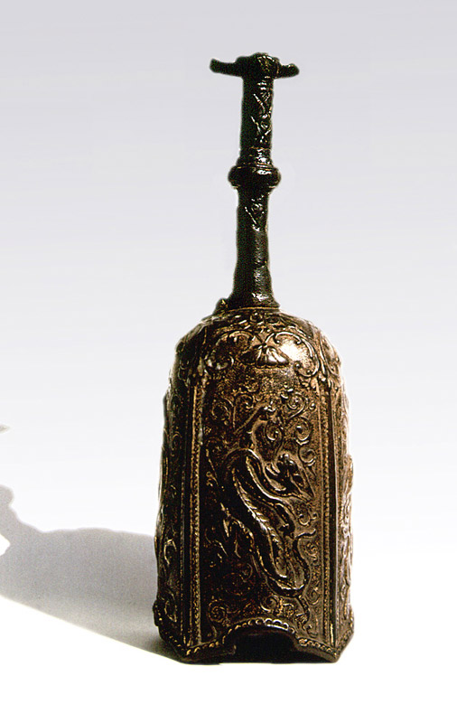 몸은 4각형이고 각 면이 팽창되어 둥근 형태를 하고 있다. 몸 위에는 마디가 하나있는 긴 손잡이가 있으며 몸과 접하는 곳은 후세에 보수한 흔적이 있고 손잡이 윗부분도 손상을 입었다. 손잡이 아랫부분은 둥글며, 큼지막한 꽃이 한 송이씩 아래를 향하고 있다.