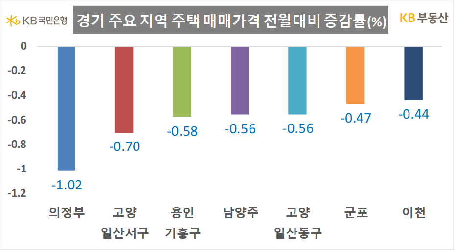 - [매매]서울 도봉-0.84%, 노원-0.61%, 경기 의정부-1.03%, 일산서-0.70%, 인천 부평-0.36%