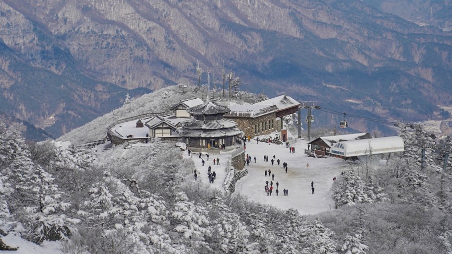 무주덕유산리조트에서 운영하는 관광곤돌라를 이용하여 덕유산 최고봉인 향적봉(1,614m)을 남녀노소