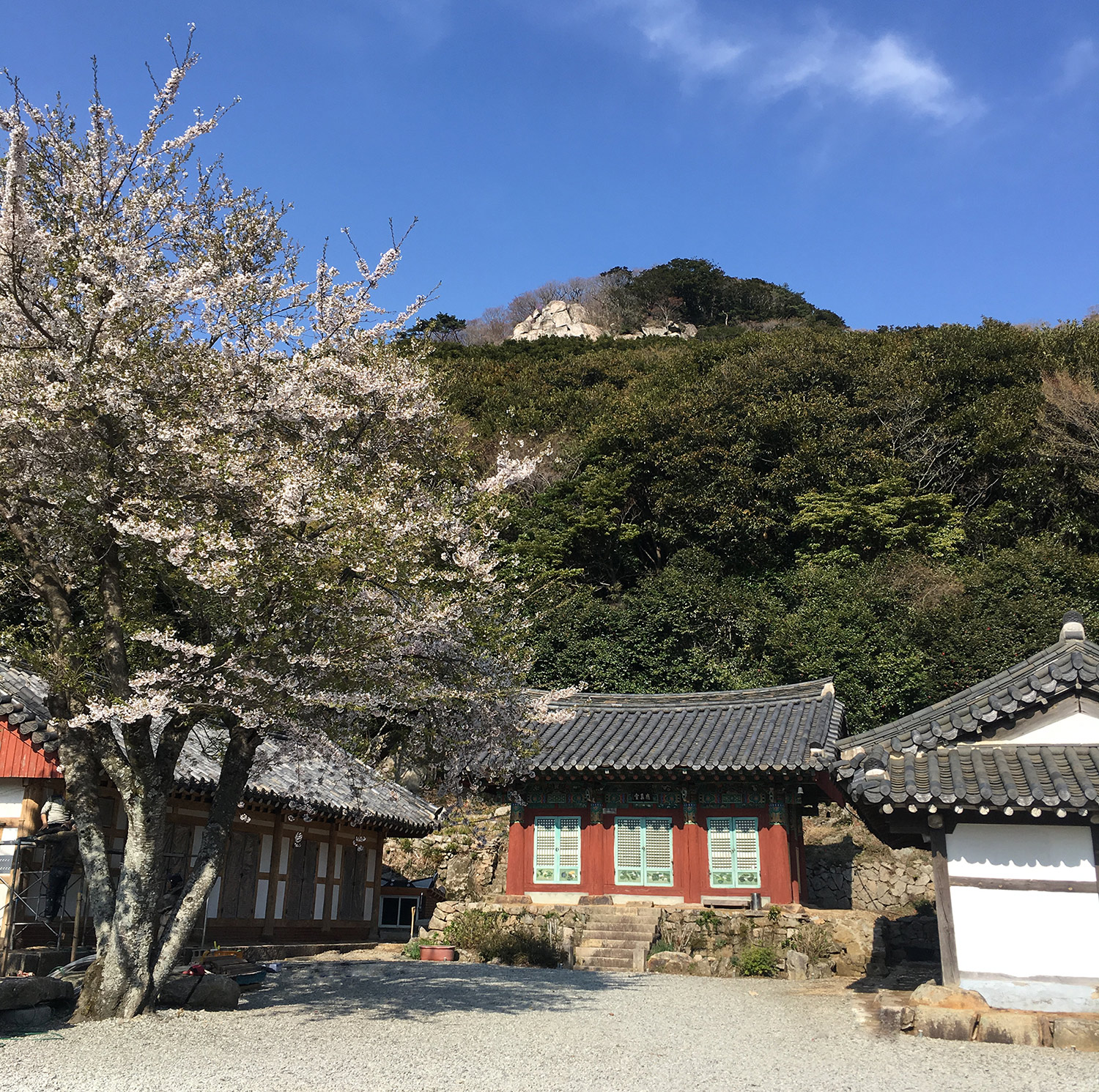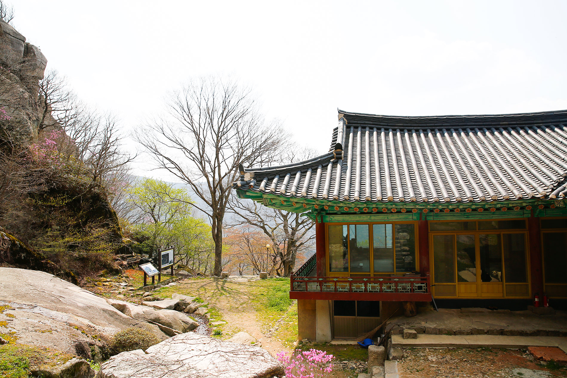 가장 남쪽의 '산이라 할 만한 것'이다. 육산 덩어리여서 듬직하기는 하나 잘났다고 할 수는 없다. 그런데도 산 보는 데 일가견이 있던 서산대사가 자신의 의발(衣鉢)―옷가지와 밥그릇을 여기 갖다노라 한 것을 보면 뭔가 있기는 한 듯하다. 그냥 들어가서는 발견할 수가 없다. 봄 긴 골짜기 장춘(長春)계곡을 걸어가봐야 한다. 다음, 정상이 아니라 반대편으로 올라가봐야 한다. 향로봉(469m). 그리고, 가부좌를 틀고 앉아 산의 형세를 살펴봐야 한다.