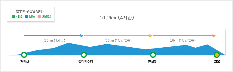 -개암사~우금암~월정약수터~만석동~감불 구간 탐방코스로 중급자코스 (약 10.2km, 4시간소요)