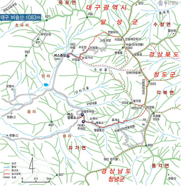 비슬산 소재지 및 높이