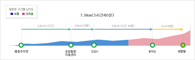 -초암탐방지원센터에서 초암사, 봉두암을 거쳐 국망봉으로 올라가는 탐방코스
