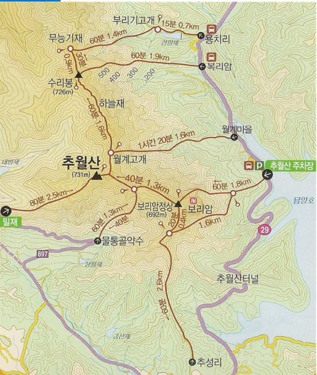 추월산 주차장~보리암~보리암정상~추월산 정상~월계삼거리~월계마을~추월산 주차장