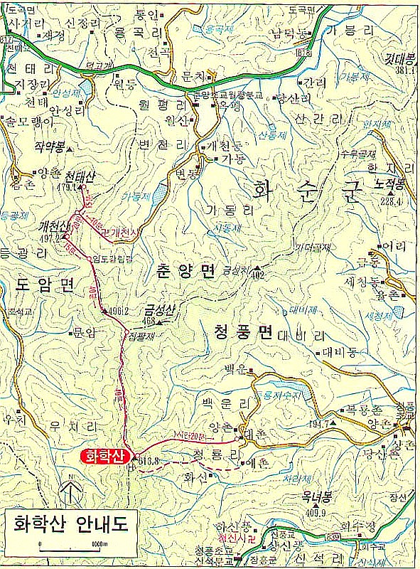 화학산 소재지 및 높이