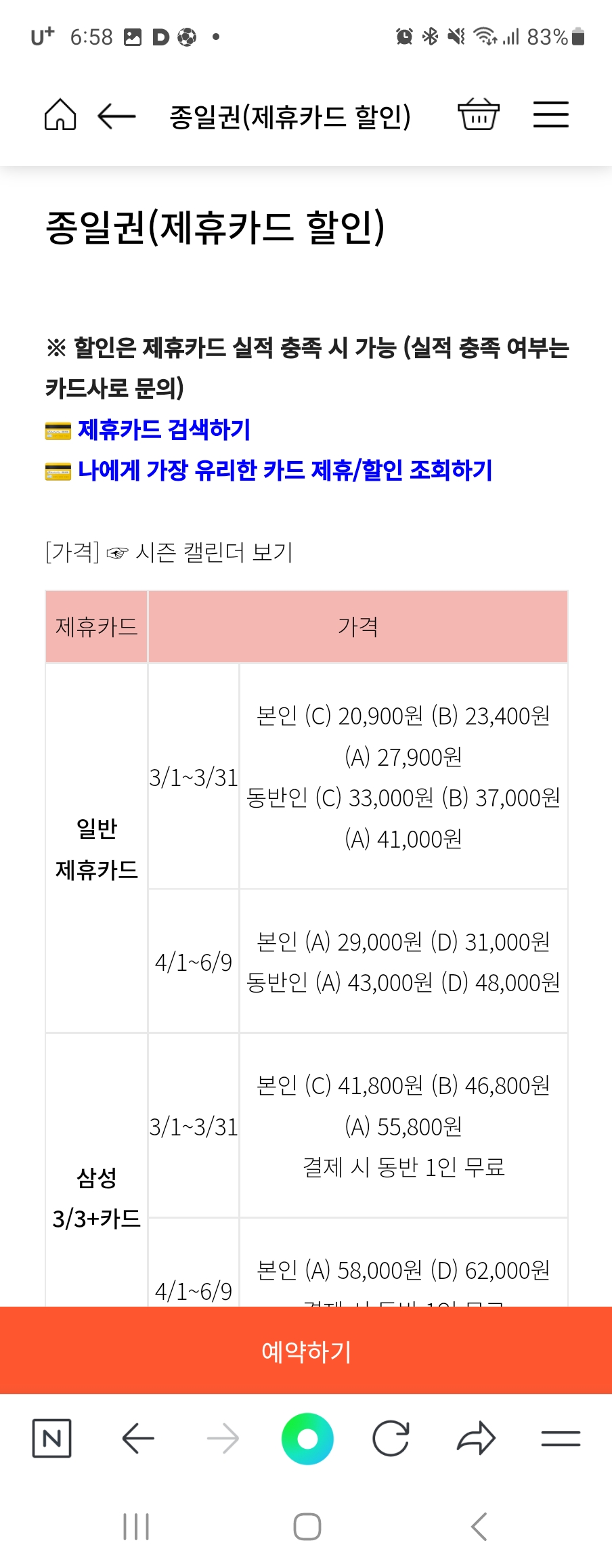 자세한 우대정보(연령에 따른 우대, 장애인우대, 국가유공자우대, 3자년 이상 가정 우대, 임산부 우대)는 에버랜드 홈페이지 내용을 참조하세요